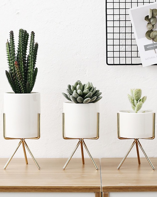 Gold, white, or black 3pcs Ceramic Flower Planters.